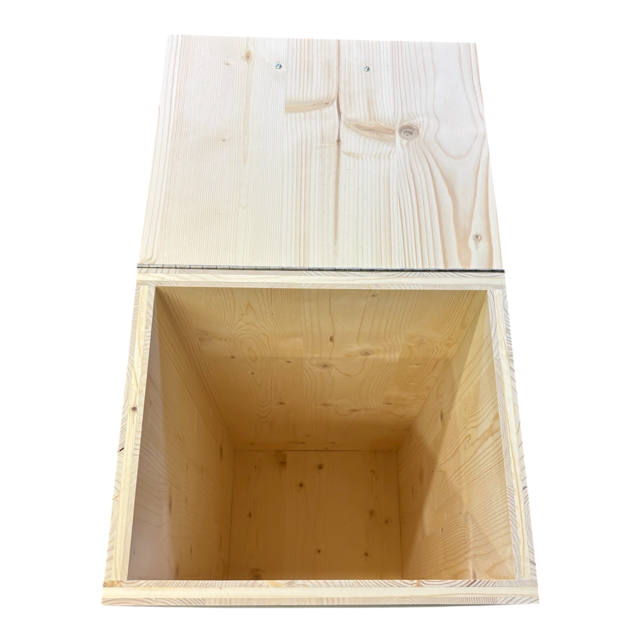 Produit idéal pour accompagner votre toilette sèche, une grande réserve à copeaux avec son couvercle en bois épicéa 3 plis ep19mm